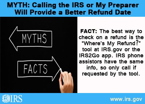 Irsnews On Twitter Calling Irs Or Your Taxpro Won T Provide A Better Date On A Tax Refund Avoid The Myth Https T Co Zxibwvhl62 Https T Co Fx5gnkoldh Twitter